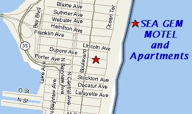 The Sea Gem Motel is on your left (just 1/2 block from the